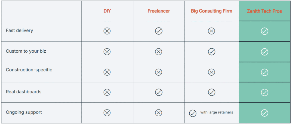 Led by construction-savvy pros who speak builder, PM, and finance fluently.
